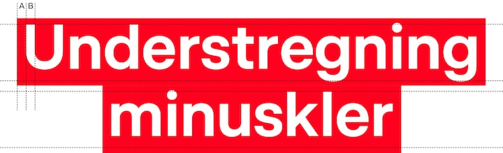 Understregningens højre og venstre margin (A) er den samme som tykkelsen på bogstavets stamme (B).