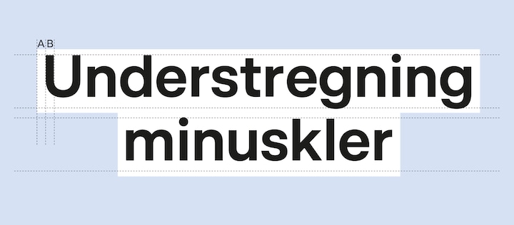 Understregningens højre og venstre margin (A) er den samme som bredden på stammen i den valgte font vægt (B). Der skal muligvis tages højde for optiske justeringer.
