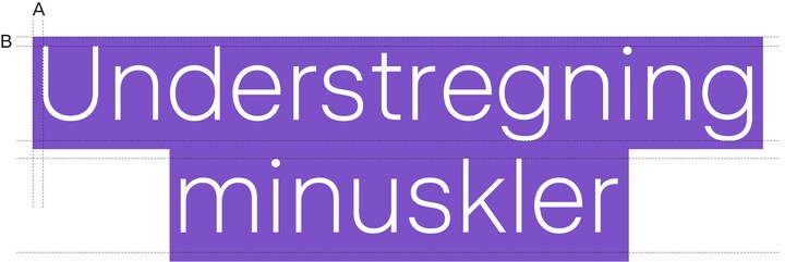 Linjeafstanden og understregningens højde er ens. Hvis understregningen er 100 px er fontstørrelsen 95 pt. Understregningens højre og venstre margin (A) er den samme som margin i toppen (B). Der skal muligvis tages højde for optiske justeringer.