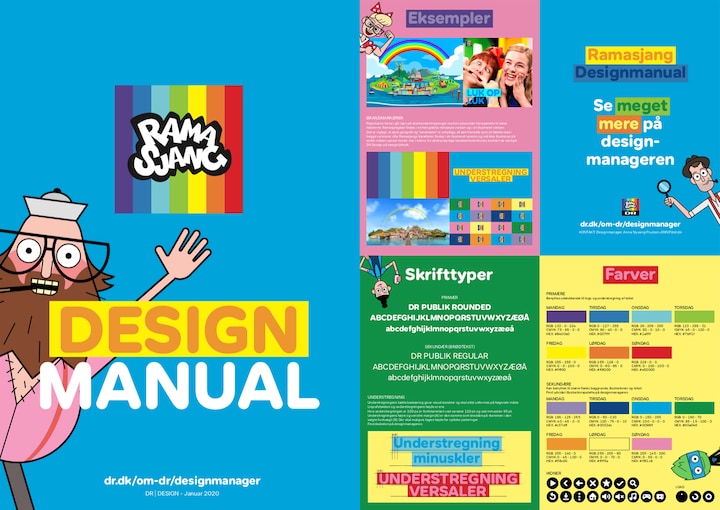 Alle Ramasjangs karakterer findes i en illustreret version og må ikke illustreres på andre måder uanset medie. Har I behov for ekstra/særlige karakterillustrationer, kontakt da venligst DR Design på design@dr.dk.