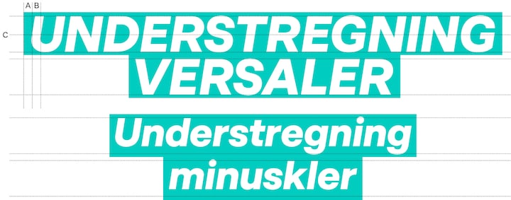 Understregningens tætte beskæring giver visuel karakter og skal altid udformes på følgende måde: