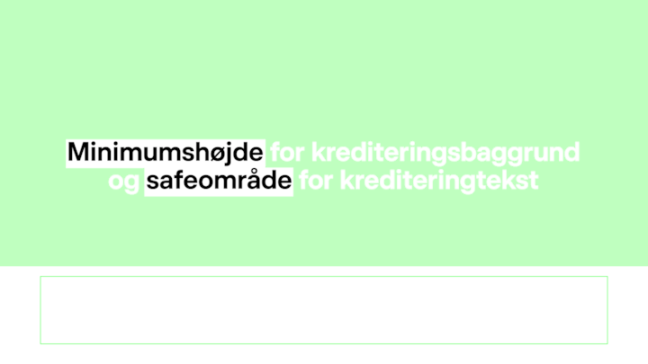 I pakken finder du bl.a. skabelon med tekstsafe og minimumshøjde, der nemt kan trækkes ind i dit redigeringsprogram, når du skal udforme din kreditering.