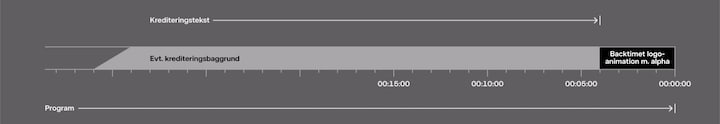 Alle DR programmer afsluttes med et DR krediteringslogo, der er animeret og backtimet, så animationen starter 4 sek før programslut og er fadet af 1 sek før.