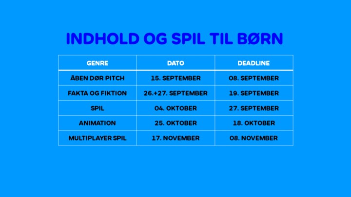 Vi vil gerne invitere til pitchdage i DR Byen hen over efteråret. Nedenfor er datoer, deadlines og ITP'er.