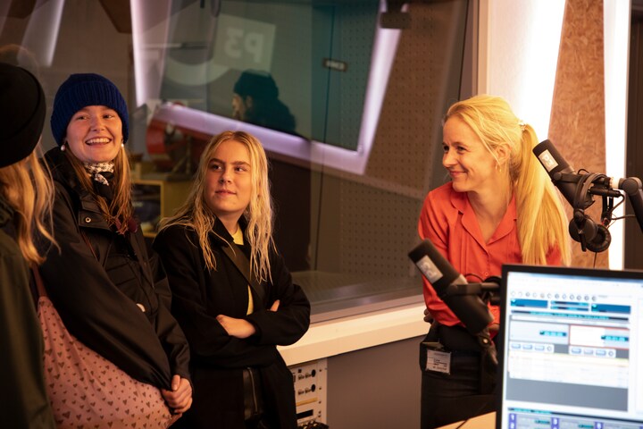 Mathias Mora Jensen, der er FTP-elev i DR, lærer fra sig til de nysgerrige besøgende. (Foto: Magnus Eg Møller)17 / 18