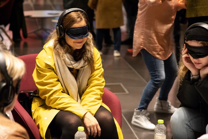 Med bind for øjnene og høretelefoner på ørerne kunne man opleve, hvordan det er at se TV som en blind. (Foto: Magnus Eg Møller)13 / 18