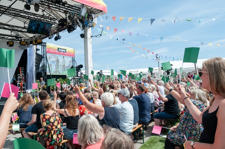 Hvert år i juni rykker en perlerække af programmer ud af DR for at sende fra Folkemødet på Bornholm. Det sker på DR’s store scene placeret på havnen i Allinge.