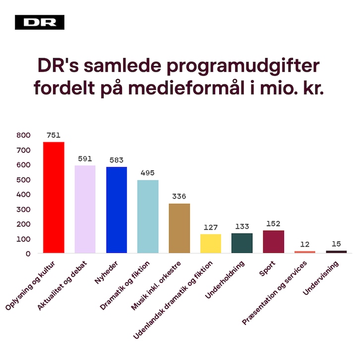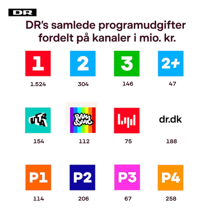 Du kan blandt andet finde informationer om, hvor mange penge DR bruger på nyheder og aktualitet, hvad dit DR-yndlingsprogram er kategoriseret som, og hvor stor en del af DR’s økonomi, der går til administration.