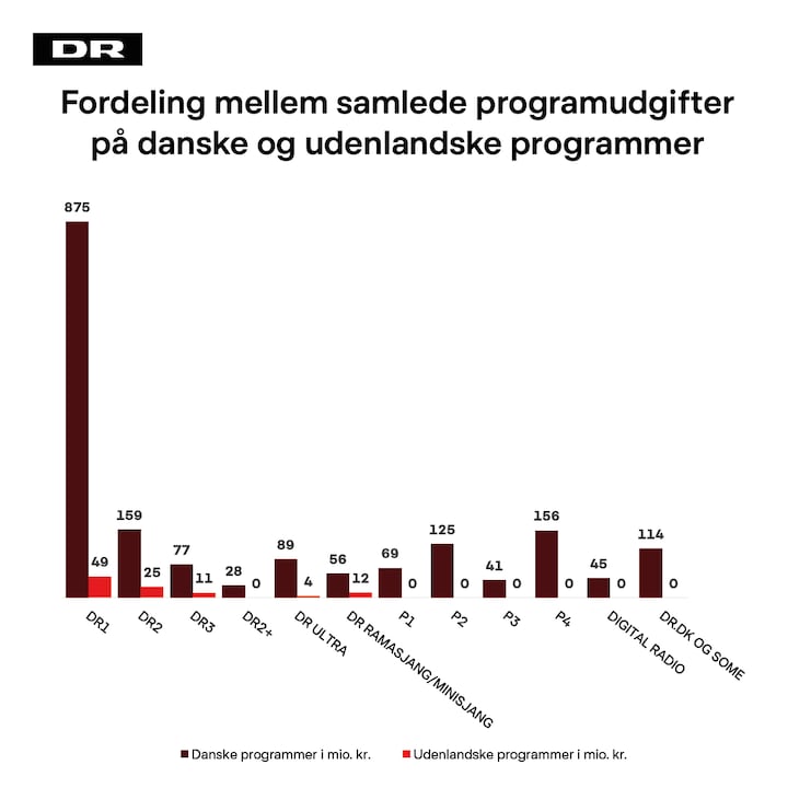 I 2021 blev 1.835 mio. kr. brugt på danske programmer, mens der blev brugt 102 mio. kr. på udenlandske programmer.