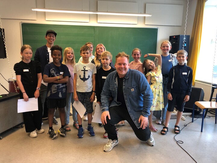 Børn flere steder i landet arbejder lige nu med rim, omkvæd og sangskriveri. De er med i tre MGP-musikværksteder med DR's Jannik Schow og musikproducer Peter Storm Otto.