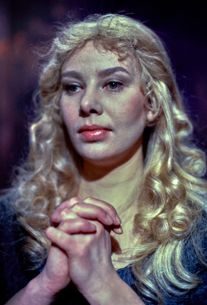 Selv om det er fjernsynet, mange husker Kirsten Olesen fra, er det på scenen, hun har haft de fleste roller, siden hun blev uddannet på Odense Teaters Elevskole fra 1968-1971. Siden 1979 har Kirsten Olesen været fastansat på Det Kongelige Teater, men alligevel er det nu også blevet til en del opgaver for DR i årenes løb. I december 1979 - året efter 'Matador'-premieren i 1978 - spillede Kirsten Olesen for eksempel Sanct Kirsten i tv-filmen 'Sanct Hansaften-spil, som Jørgen Leth for øvrigt var instruktør på. (Foto: © Dr arkiv)3 / 13