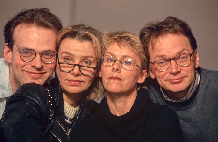 Platte jokes er måske ikke ligefrem det, som Kirsten Olesen er med kendt for, men i 1994 var hun på skuespillerholdet i satireprogrammerne 'Noet på den dumme'. Programmerne havde programteksten "En lille halv time fra det eksistentielle kælderdyb fyldt med ubegavede postulater og ikke mindst platte jokes - rystet ud af ærmet med usikker hånd". Kirsten Olesen spillede sammen med Niels Olsen, Christian Halken og Jannie Faurschou. (Foto: © Dr arkiv)9 / 13