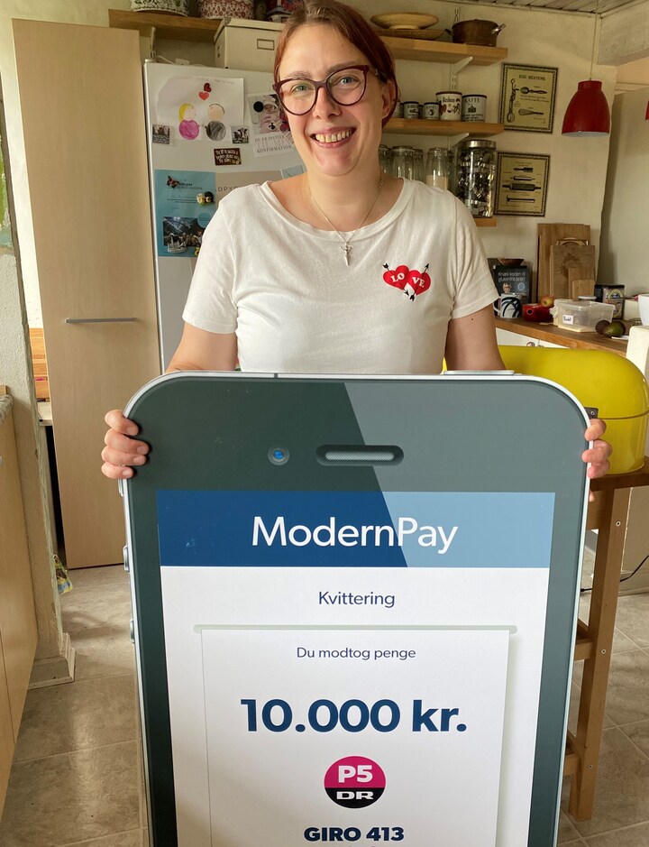 Camilla Jehner Baake fra Børn og Unges Mærkesager i Horsens modtog 10.000 kroner fra 'Giro 413'. En del forældre har ikke lige midlerne til at holde konfirmationen eller non-firmationen for børnene, og 'Giro 413'-kronerne kommer blandt andet til at gå til, at flere børn i Horsens og omegn kan få en god fest. (Foto: © (DR))3 / 9
