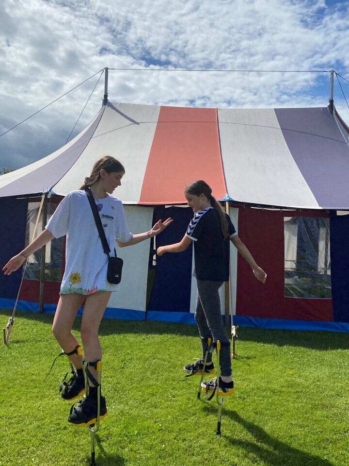 Gademix i Kolding har gennem snart en snes år været et frivilligt socialt værested for 10-16-årige, der som her for eksempel står på stylter og arbejder med at skabe fællesskaber og netværk. Gademix får 13.900 af de indsamlede kroner fra sidste års 'Giro 413', og pengene skal blandt andet bruges til bygning af skateboardramper og kolonihaver samt en udflugt for de ældste i målgruppen - de 13-16-årige. (Foto: © (DR))4 / 9