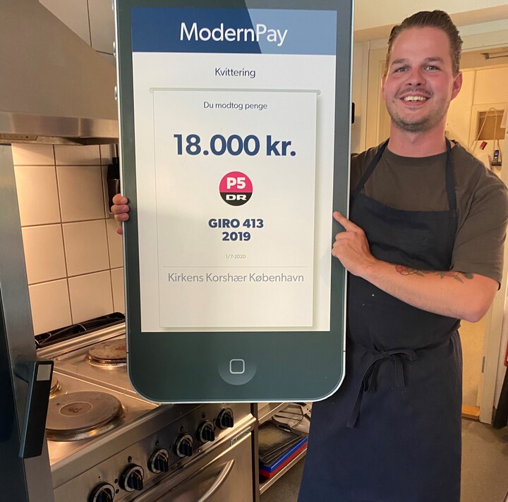 Kok Jesper Frøsig fra Kirkens Korshær på Christianshavn modtog 18.000 kroner fra 'Giro 413' ved uddelingen i 2020. Pengene skal gå til en udflugt til badeland for sårbare familier og børn. Der er omkring 20 familier med 40 børn tilknyttet stedet, og på søndag den 9. august kan du høre Jesper Frøsig fortælle om projektet i 'Giro 413' klokken 12.15 på P5. (Foto: © (DR))7 / 9
