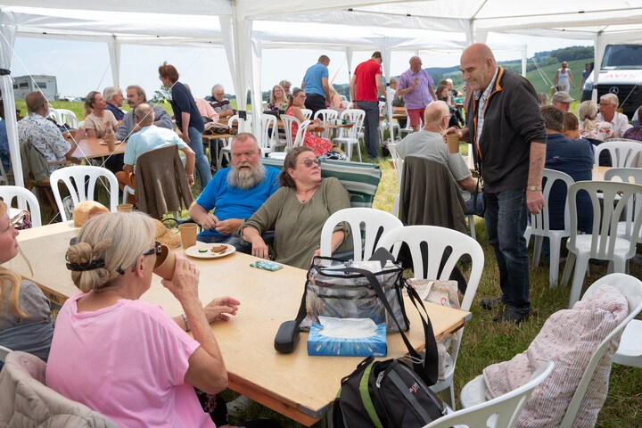 Som dagen skred frem kom flere og flere statister til. Ved siden af produktionsholdets bus og sminkerummet var et festtelt slået op. Her kunne statisterne slappe af i skyggen, inden turen gik mod settet. (Foto: © Bjarne Bergius Hermansen)8 / 13