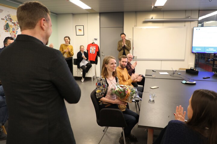 - Tusind tak, det er jeg meget overrasket og overvældet over, lød det fra en tydeligt glad Annegerd Lerche Kristiansen, mens kollegerne brød ud i klapsalver.
