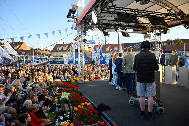 Lørdag er der stadig mulighed for selv at møde op ved DR Scenen i Allinge. Er du ikke lige der, er der mulighed for følge med i radio og TV fra Folkemødet. TV-Avisen samler også lørdag klokken 17.15 op på dagens Folkemøde på DR1. (Foto: © Anders Beier)20 / 20