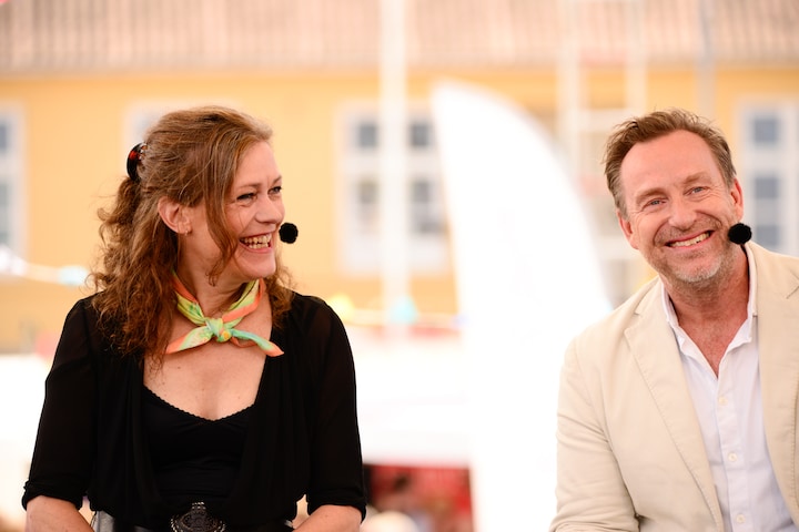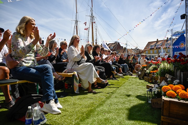 Fredag var vejret fortsat godt på Bornholm, og da kunne det talstærke publikum for eksempel følge P1-programmerne 'Slotsholmen', 'Klog på sprog' og 'Bagklog' på DR Scenen, ligesom der også var en særudgave af 'Fællessang' med Katrine Muff og Johannes Langkilde, 'Det politiske talkshow' og 'Deadline' på DR2 fra Allinge. (Foto: © Anders Beier)14 / 20