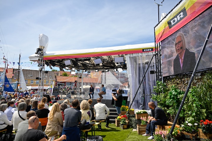 Efter at corona helt satte en stopper for Folkemødet i 2020, og efter at der sidste år var særlige restriktioner og krav om tilmelding, er Folkemødet på Bornholm tilbage for fuldt blus. Det samme er DR, der i løbet af torsdag, fredag og lørdag sender en stribe programmer og holder en række arrangementer fra DR Scenen på indermolen på Allinge Havn. (Foto: © Anders Beier)1 / 20