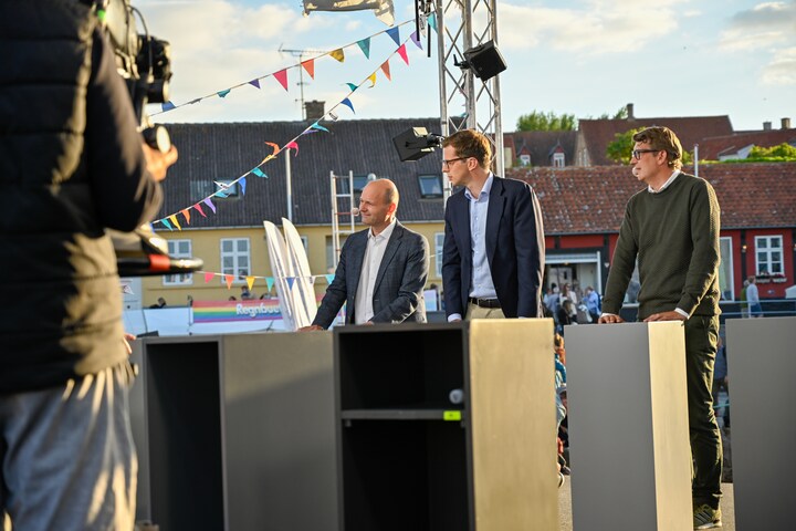 'Debatten' havde samlet partilederne på sidste folkemøde inden et folketingsvalg, og Clement Kjersgaards spørgsmål til blandt andre Søren Pape, Alex Vanopslagh og Troels Lund Poulsen var: 'Hvor skal Danmark hen? Troels Lund Poulsen repræsenterede Venstre, da partileder Jakob Ellemann-Jensen tidligere på dagen måtte rejse hjem, da hans far, Uffe Ellemann-Jensen, er alvorligt syg. (Foto: © Anders Beier)12 / 20