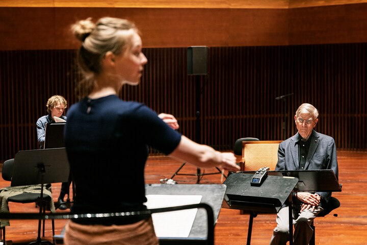 På behørig coronaafstand fulgte dirigentskoleeleverne med i Herbert Blomstedts arbejde med DR Symfoniorkestret. Ved Torsdagskoncerten dirigerede han DR Symfoniorkestret gennem svenske Franz Berwalds Symfoni nr. 1 og Schuberts Symfoni i C-dur, der bliver kaldt ’Den store’. Koncerten kan fortsat høres på DR Lyd og dr.dk. (Foto: © Per Morten Abrahamsen, permortenabrahamsen.com)5 / 9