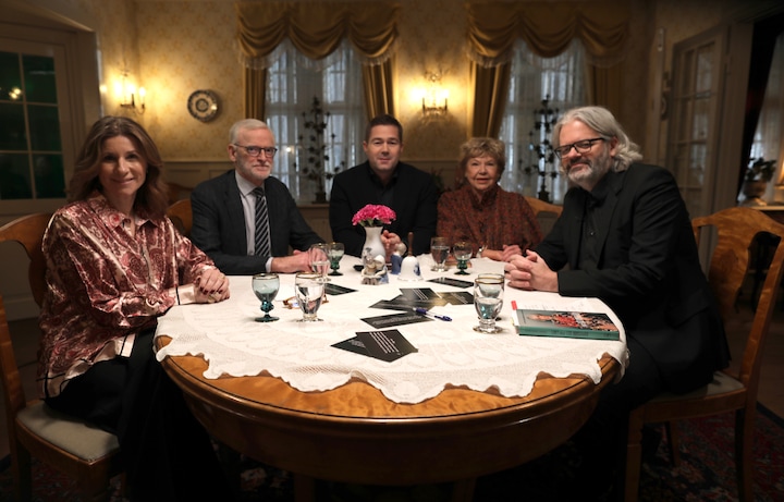 I programmet medvirkede også en stribe Matador-elskere - blandt andet for at fortælle rørende anekdoter og diskutere Lise Nørgaards mange skarpe, sjove og vilde udtalelser gennem tiden. Her er det journalist og vært Tony Scott fra Radio4, komiker og 'Matador'-storfan Anne Bakland, udenrigsminister Lars Løkke Rasmussen, der har set 'Matador' over en snes gange samt Janus Madsen fra sitet Matadoronline.dk, som drøfte, hvad der har været centrale udtalelser og mindeværdige citater fra Lise Nørgaard og 'Matador'. (Foto: © Agnete Schlichtkrull)7 / 11