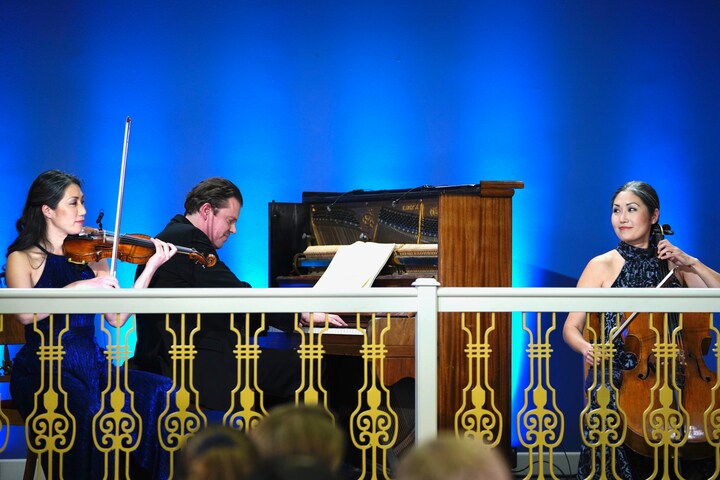 Trio con Brio Copenhagen, der består af søstrene Soo-Jin Hong og Soo-Kyung Hong, som begge spiller i DR Symfoniorkestret, samt Soo-Kyungs mand, Jens Elvekjær, bød i mindeprogrammet på Brahms’ klavertrio opus 8, Scherzo-satsen fra 'Matador'-episoden 'Den 11. time'. (Foto: © Agnete Schlichtkrull)9 / 11