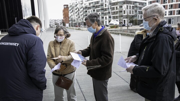 Foran DR Koncerthuset summer det af liv. Velklædte og veloplagte gæster holder humøret højt, mens der tjekkes coronapas og billetter ved indgangen.