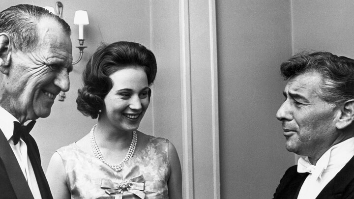 Kong Frederik gik nu også gladeligt ud for at se, hvordan andre dirigenter arbejdede. Her hilser han sammen med Prinsesse Benedikte på dirigent og komponist Leonard Bernstein. Sidstnævnte modtog i 1965 Leonie Sonnings Musikpris i København. (Foto: © Bjarne Luthcke, Scanpix)5 / 8
