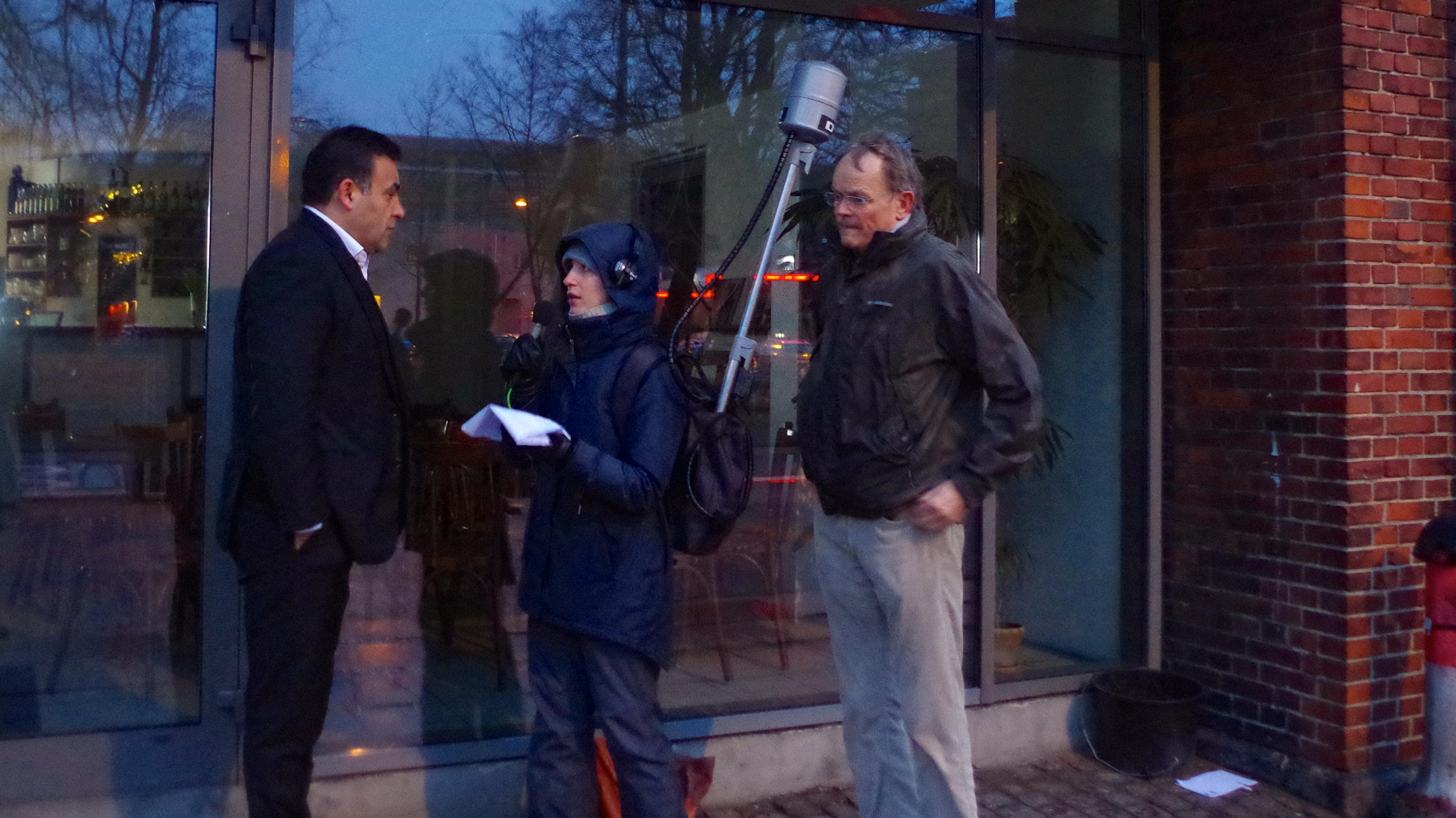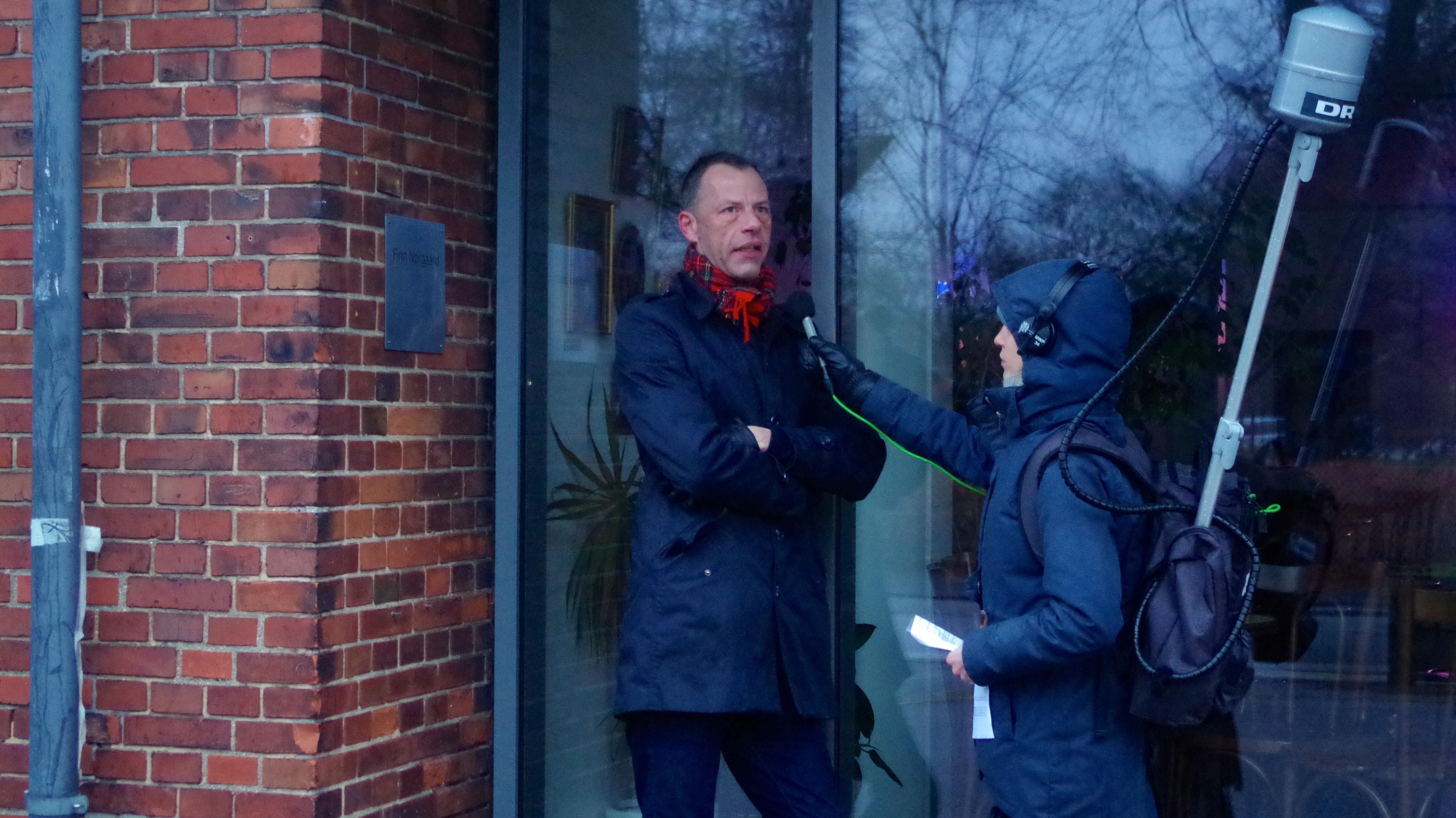 ”Hvordan har det påvirket beboerne og Mjølnerparken, at området efterfølgende er blevet nævnt rigtig mange gange i forbindelse med terror?” spørger Maja Rosager og vender mikrofonen over mod Eskild Dahl.