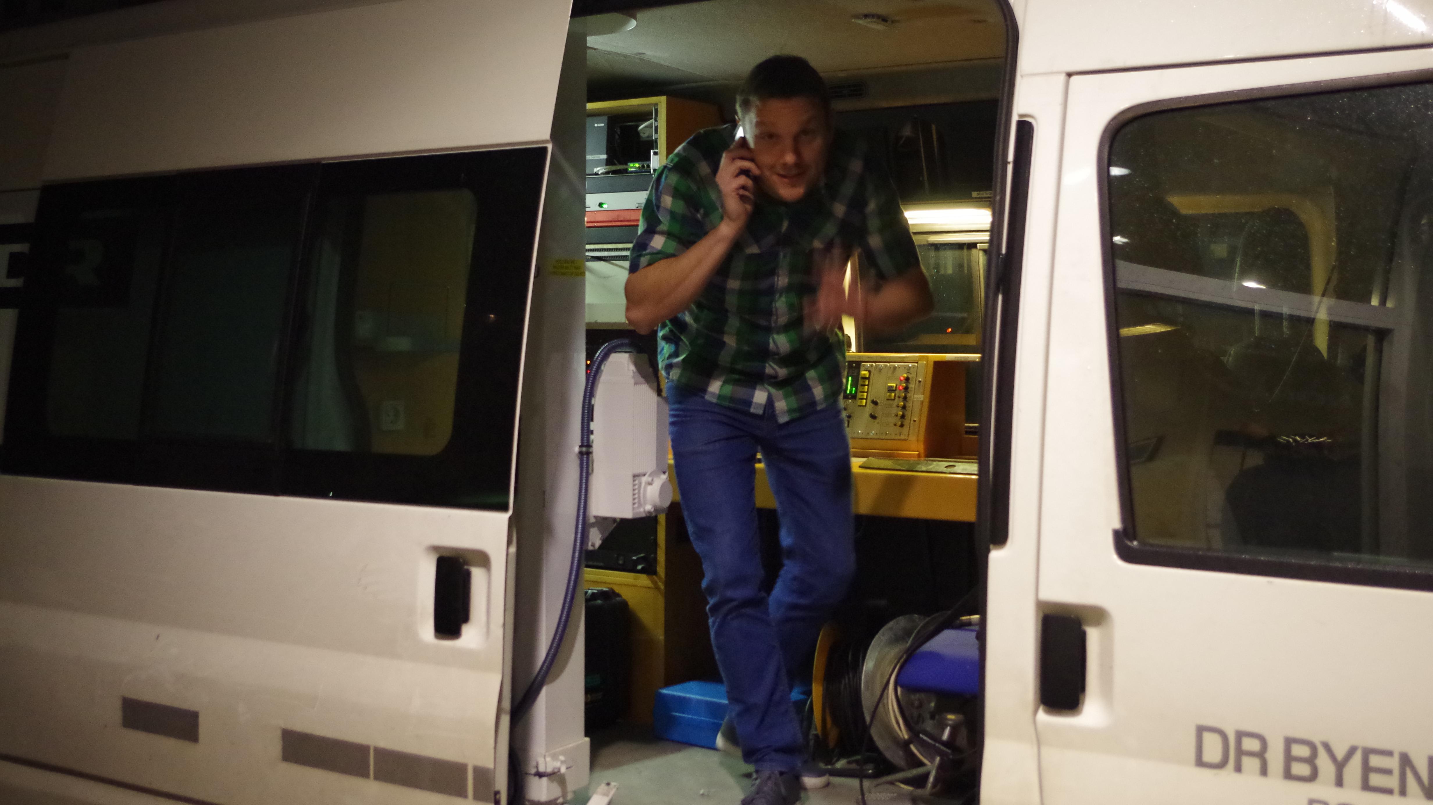 ”På en onsdag morgen, hvor din radio kommer til at lyde en lille smule anderledes, for vi er rykket ud af huset. Vi sender lige nu fra Mjølnerparken på Nørrebro i København.”