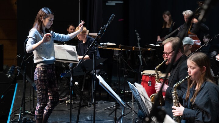 I spidsen for koncerten i Værløse den 11. oktober stod DR Big Bands japanske chefdirigent Miho Hazama, som i disse uger leder bandets turné rundt på Sjælland og øerne. På turnéprogrammet er numre, som DR Big Band senere på efteråret skal have med på turné til Japan. (Foto: © Nicolas Koch Futtrup © DR)7 / 7