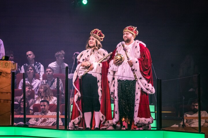 P3's lyttere kunne også være med hjemmefra, da kanalen varmede op til showet i to timer. Her var det Anders Ugilt og Nynne Givskov, der stod for opvarmningen, som blev sendt fra DR Koncerthusets foyer. (Foto: © Christian Larsen, DR Koncerthuset)4 / 19