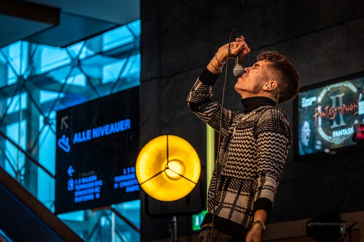 Allerede mens gæsterne ankom, var der musik i DR Koncerthusets foyer. Her spillede årets to vindere af DR's 'Karrierekanonen'. Her er det Dillistone, der er på scenen. (Foto: © Christian Larsen, DR Koncerthuset)5 / 19