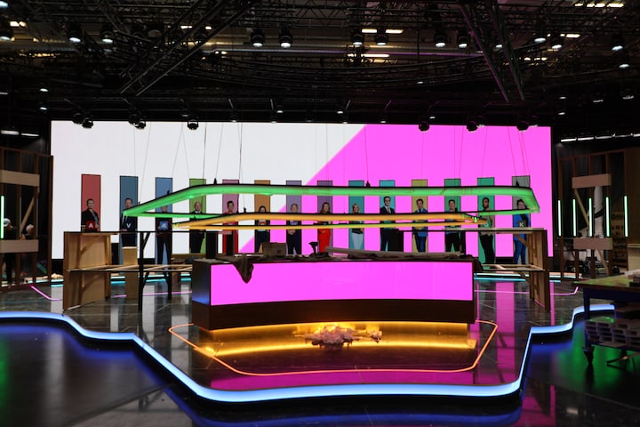Tre uger senere ser DR's værksted sådan her ud - et stort og flot valgstudie er blevet bygget af medarbejderne i DR Scenografi. (Foto: © Sofie Gerdes)2 / 7