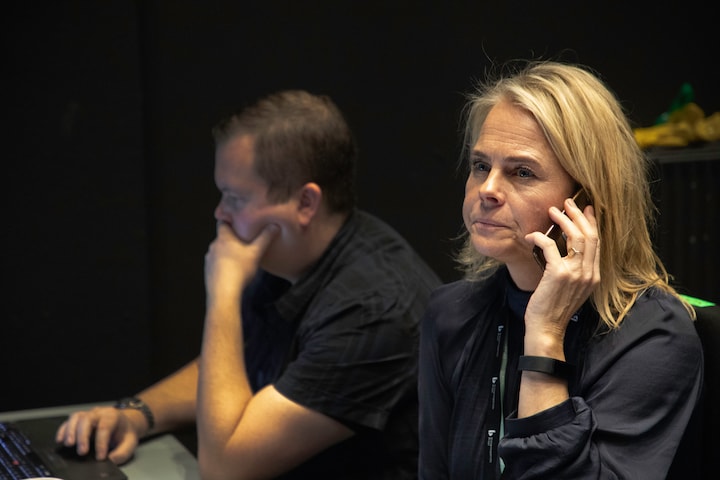Når Sidsel Klostergaards telefon ikke ringer, er det fordi hun allerede taler i den, og på samme tid taler hun med og instruerer folkene omkring sig i Odense.