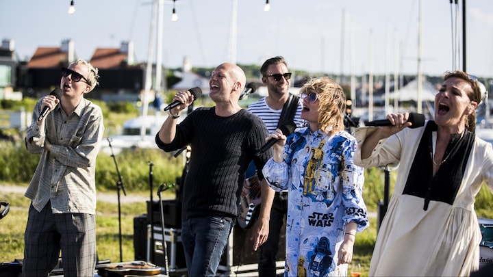 Mandskabet tæller Troels Lyby, der for andet år i træk er vært på programmerne. Med sig har han i dag Lis Sørensen, Annika Aakjær og Andreas Odbjerg, og mens der stilles bænke, bar og scene op til aftenens koncert, er musikerne sendt i byen, hvor Lis Sørensen giver et nummer på en lokal restaurant.