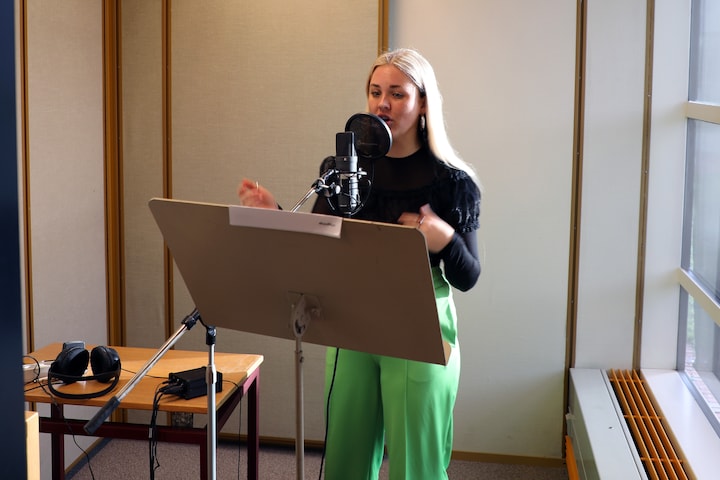 - I løbet af dagen får jeg typisk fire forskellige manusser i hånden, som jeg skal speake. Som oftest har jeg ikke selv skrevet det, der skal speakes, så jeg gør meget ud af at forstå manus og læse det igennem nogle gange. Det skal lyde overbevisende, når jeg indtaler. Hvis jeg ikke selv tror på det, gør børnene jo heller ikke. Man kan godt høre, om den, der speaker, selv får nyhedsessensen ud af manus, eller om man bare læser det op som en robot. Nogle gange laver jeg selv indslag – jeg elsker at være med i hele processen. Så føler jeg mig som en ægte journalist, mere end en vært, fortæller hun.