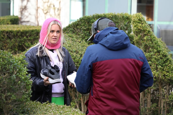 - I et af oplæggene er teksten ikke skrevet, så den passer til mig, så jeg har skrevet et nyt bud, som Rikke skal se. Når alle oplæg er godkendt, snakker jeg mulighederne igennem med vores fotograf Simon og FTP-elev Malene for at gøre oplæggene visuelt spændende. Ofte tager vi ud i virkeligheden og laver oplæggene, hvor det giver noget til historien, men i dag er vi presset på tid, så vi laver dem her i gårdhaven, siger Inge Thorup.