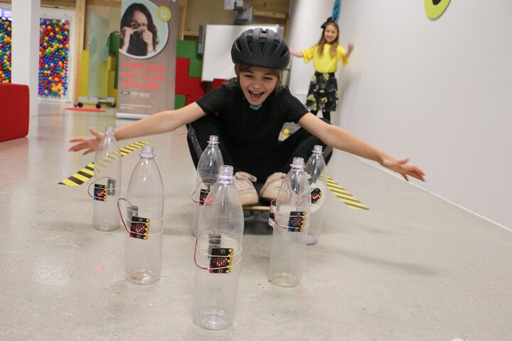 Her kan man afprøve ”menneskebowling” en særlig programmeret bowling bane, hvor gæsten selv er kuglen og micro:bitten registrerer, hvor mange kegler der væltet.