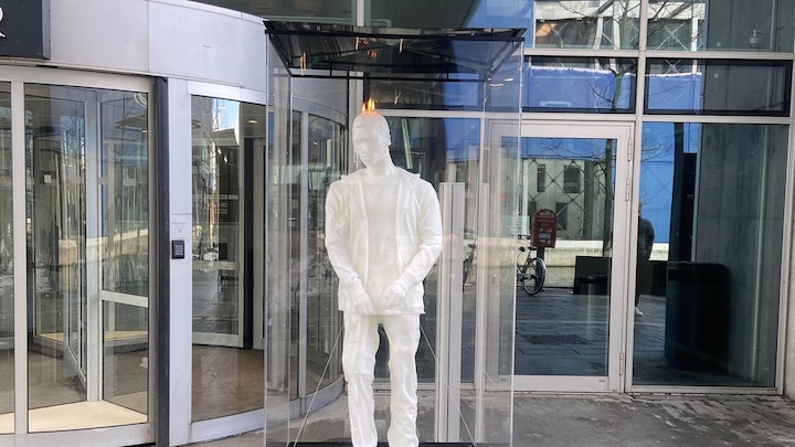 I bybilledet står menneskeformede lys og brænder: