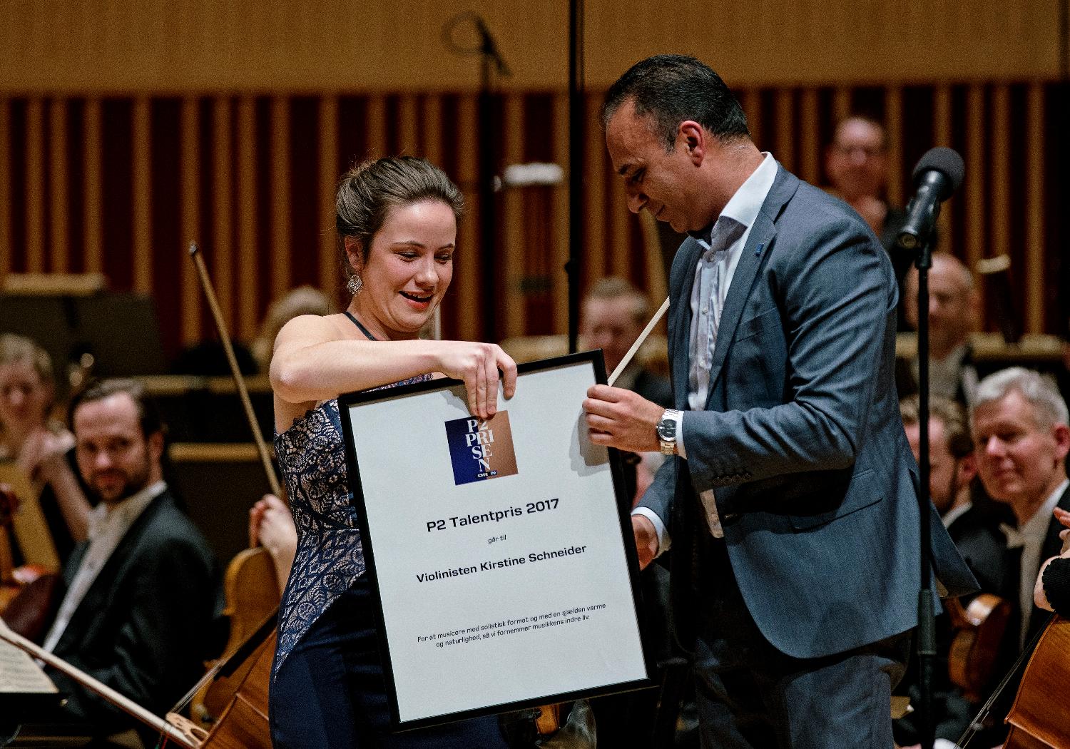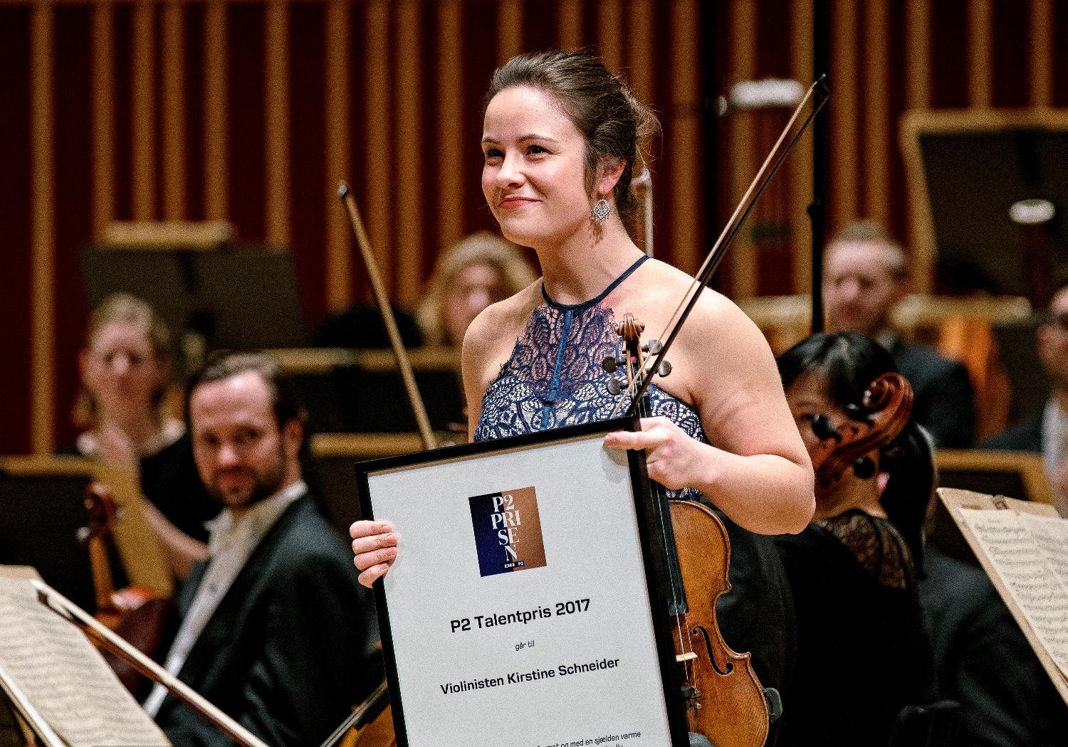 Nu er den 23-årige violinist Kirstine Schneider tilbage i Danmark, hvor hun går på Det Kongelige Danske Musikakademi. I efteråret var hun solist i Esa-Pekka Salonens Violinkoncert med Copenhagen Phil, da koncerten for første gang blev spillet i Danmark, og den flotte indsats hér var en stærkt medvirkende årsag til, at Kirstine Schneider fredag aften fik P2 Talentprisen 2017. Den giver P2 hvert år til en yngre dansk musiker under 30 år eller et ensemble, der har markeret sig i den forgangne koncertsæson.