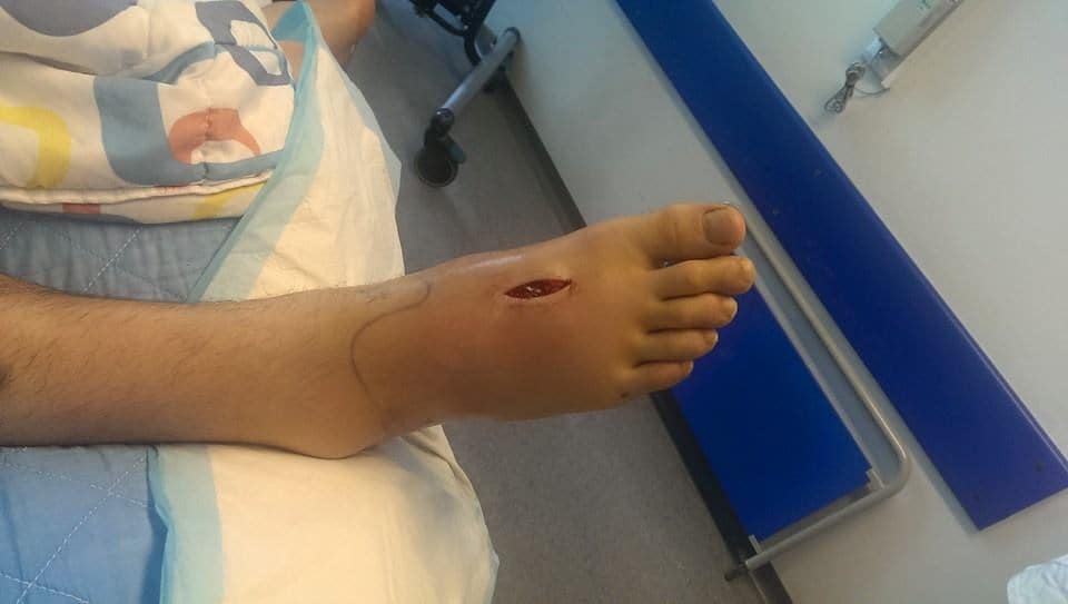 Men pludselig får han store smerter i højre fod. Undersøgelser viser ingen tegn på brud, og da historikken hos en thaibokser trods alt taler for, at man har ondt hist og her en gang i mellem, så er det først fem dage senere, alvoren går op for både læger og Niclas selv.