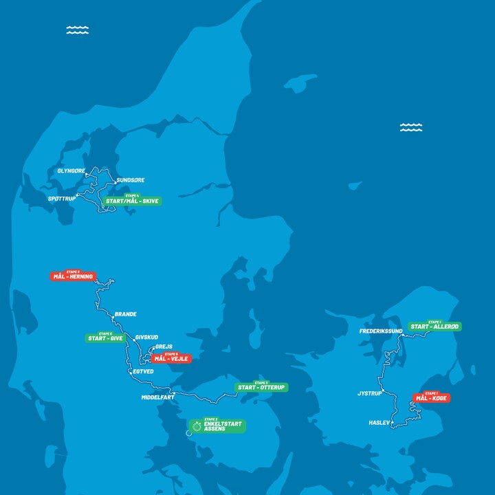 1. etape køres tirsdag fra Allerød til Køge og kan ses direkte på DR1 fra kl. 12.15 og følges her på dr.dk.