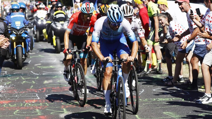 Pogacar gav den også et skud på stigningen lige før mål, og det endte i endnu en dansk-slovensk duel. Vingegaard havde dog ingen problemer med at følge med Pogacar.