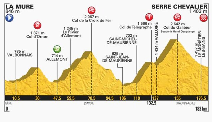 Der venter nemlig to store bjerge uden for kategori, når feltet først skal over Col de la Croix Fer, inden det legendariske Tour de France-bjerg Col du Galibier skal bestiges på racercyklerne.