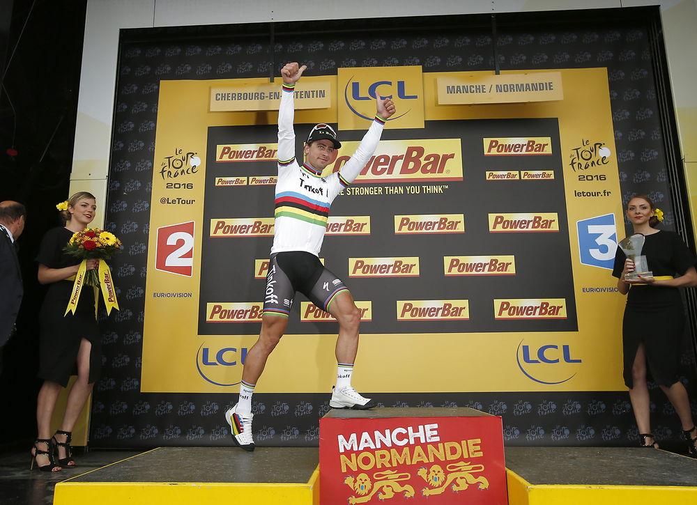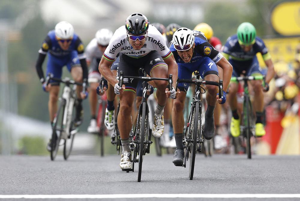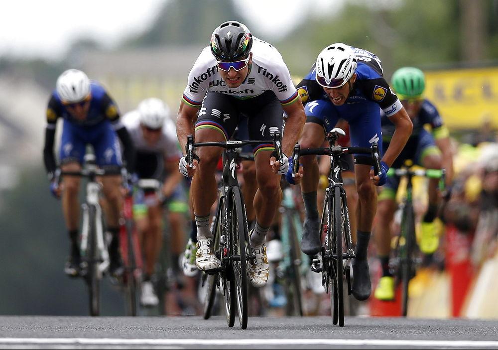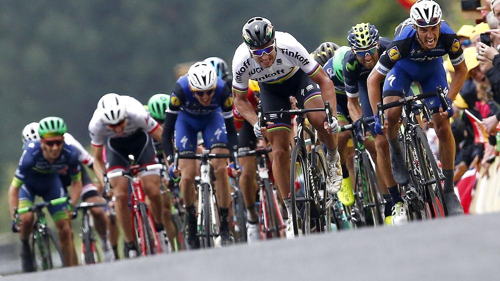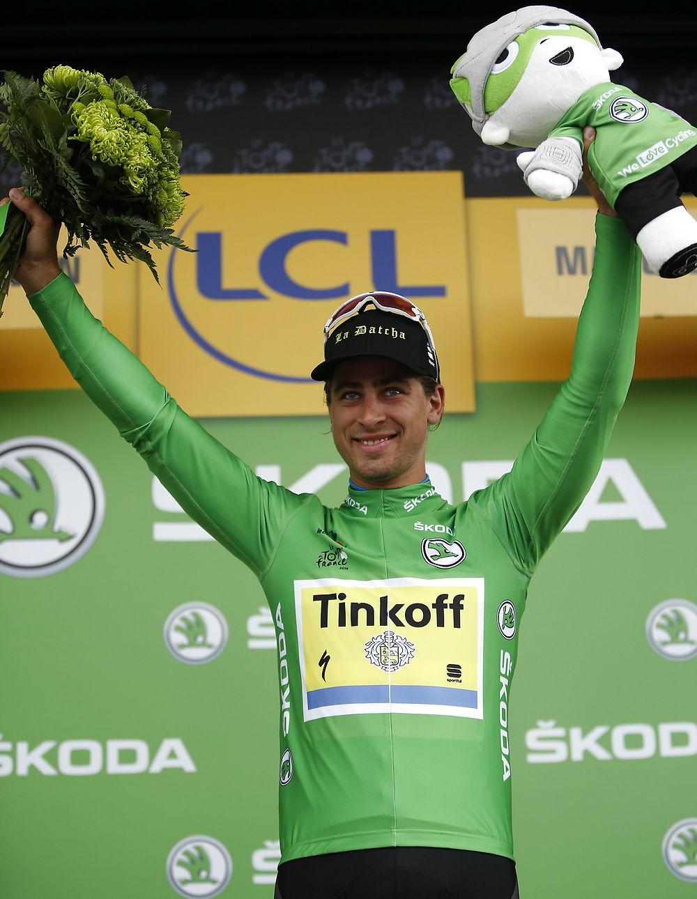Peter Sagan satte de andre ryttere til vægs i bjerg-spurten på 2. etape af årets Tour de France. Julian Alaphilippe fra Etixx-Quick Step og Movistars Alejandro Valverde kunne ikke holde trit med Tinkoff-profilen. Slovakken har desuden fået en anelse flere trøjer i klædeskabet, og er i skrivende stund indehaver af hele tre utrolig anerkendte cykel-trøjer. Den ene symboliserer hurtighed og de to andre indikerer 'ingen over og ingen ved siden af'.