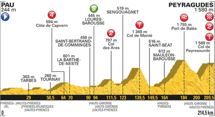 Etapen går fra Pau over seks kategorisede stigninger til toppen af Peyragudes.
