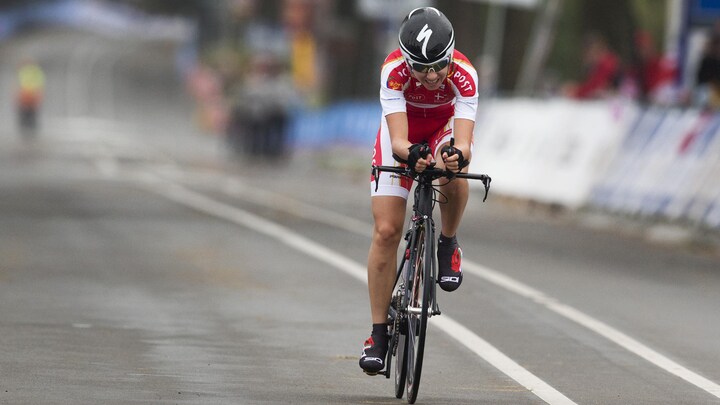 Godt midtvejs på den 27,5 kilometer lange enkeltstart havde den senere vinder slået et hul på 40 sekunder til den nærmeste konkurrent Trine Schmidt, der også endte med at nappe sølvet.